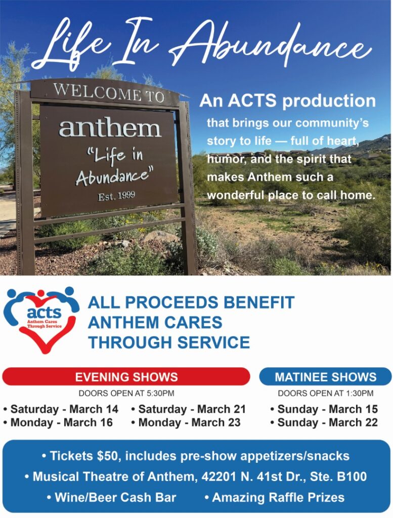 Tickets are now on sale for Life in Abundance — an uplifting and fun play celebrating 25 years of the Anthem community! This is our biggest fundraiser of the year.